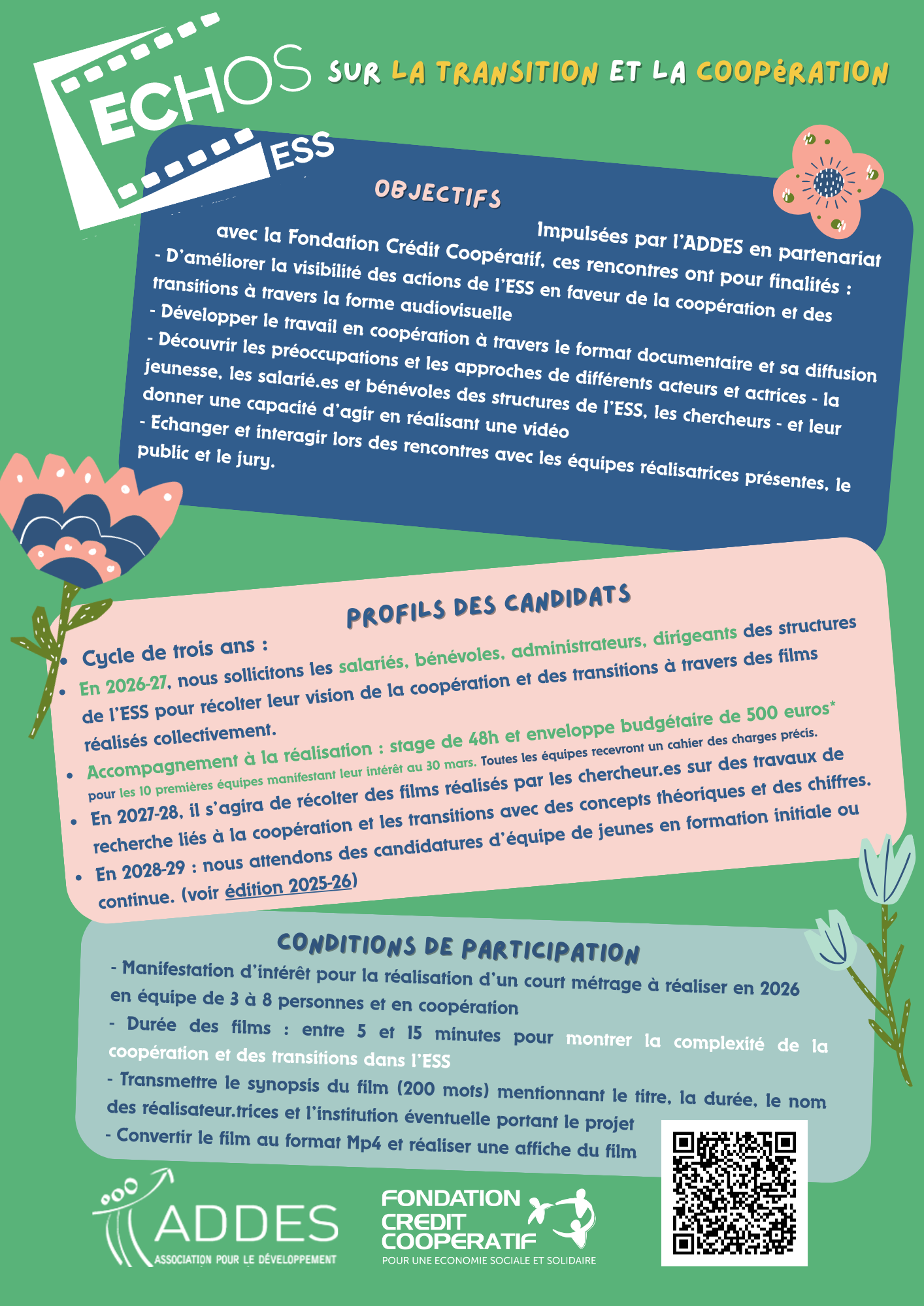 L’ADDES a le plaisir de lancer son second appel à projet de courts métrages 2026-2027 sur le thème de la coopération et des transitions dans l’ESS.